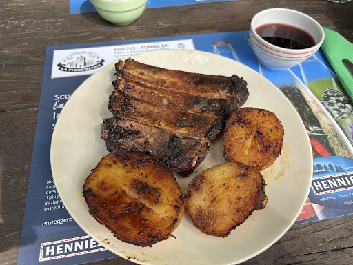 Read moreAndati per pranzo il mese di settembre a mangiare le loro costine di qui si sente parlare, la scelta si è rivelata azzeccata, sono grigliate alla pioda il qui le rende croccanti e morbide ma non asciutte, la marinatura e molto azzeccata. Il servizio e semplice come corrisponde a un Grotto e il paesaggio incantevole. Parlando con la proprietaria ci ha parlato del autunno e la selvaggina, passeremo a provarla perché sicuramente ne vale la pena. I prezzi...