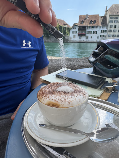 Read moreGuter Kaffee und spezielle aber feine Gipfeli. Die Gazzosos mit mehreren Gustis sind auch sehr zu empfehlen. Geniale Lage direkt am Quai der Aare. Nervig ist für mich immer das Selbstbediehnungskonzept! Willkommen in der Servicewüste Schweiz!!! Als ich um 09:30 im Kaffee mit meiner Begleitung eintraf, war das Personal noch am Stühle rausstellen und meinte dann nur schlecht gelaunt, wir müssten noch warten und nass seien die Stühle denn auch noch. Irgendwann durfte ich dann ins Caffee rein um zu bestellen und mir dann die Getränke selber rausbringen!!! Das geht noch...