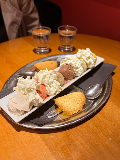 We had some ice cream here today and were so happy that we chose this café. The ice cream we got was the Potpourri, which is a plate of 6 different small scoops (unfortunately you cannot pick the flavors), and I highly recommend it.