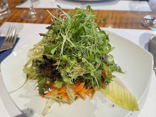 Die Speisen waren nicht nur optisch ein Genuss, sondern auch geschmacklich hervorragend. Besonders beeindruckt hat mich das Hauptgericht: zart gegartes Geflügel mit frischen Kräutern, dazu knackige Kartoffeln, liebevoll angerichtetes Gemüse und eine perfekt abgeschmeckte Sauce. Ein Highlight auf dem Teller, das Gourmet-Niveau erreicht!