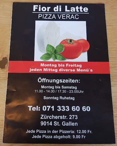 Read moreSehr leckere Pizza am West-End von St. Gallen! Nettes Inhaber-Ehepaar, das super Pizzen und feine Desserts anbietet; die Dame des Hauses wirkt manchmal etwas unfreundlich, aber dieser Eindruck täuscht. 😉 Wir kommen immer wieder sehr gerne her. Ausserdem: Am Mittag gibt's für CHF 22.- ein Mittagsmenü mit Getränk (0.33L), Salat &...