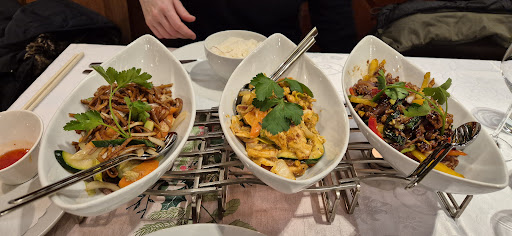 Bei den Hauptgerichten waren wir ebenfalls restlos begeistert. Das knusprig gebackene Rindfleisch mit frischem Gemüse und gebratenen Nudeln war ein Geschmackserlebnis der Extraklasse. Die Kombination aus der perfekt gegarten Textur des Fleisches und den würzigen, leicht süßlichen Aromen war einfach großartig. Ebenso überzeugte das knusprig gebratene Poulet mit Gemüse und gedämpftem Reis, das durch seine zarte Konsistenz und die perfekt ausbalancierten Gewürze bestach. Beide Gerichte waren mit Liebe zum Detail angerichtet und wurden heiß serviert.