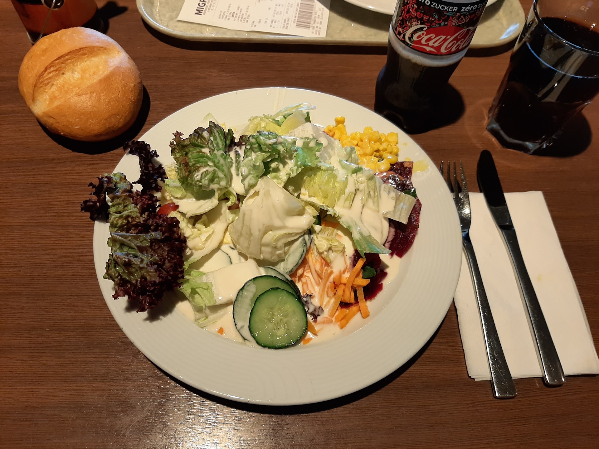 Read moreIch esse regelmäßig in diesem Migros Restaurant. Das Essen ist tendenziell OK, aber es kommt sehr oft vor dass Fleisch nicht durchgebraten ist und das Gemüse salzig. Auch die Mengen der Menüs ist zum Teil Kindergröße und der Preis dementsprechen nicht günstig. Ebenfalls sind viele Stoffsessel sehr versifft und richtig unhygienisch, sollte man Mal reinigen oder austauschen. Was aber sehr nervt ist der Kundenservice. Bei Reklamationen wird man nicht ernst genommen und es gibt anscheinend seit längerem solche sammel Karten für Kaffee. Noch nie wurde ich von einer Kassiererin darauf aufmerksam gemacht und als ich es bei einem anderen Kunden gesehen habe und auch einen wollte hieß es es gibt keine. Auch am Take away habe ich keine bekommen und ich trinke oft Kaffee im Migros. Warum macht man sowas und die Kunden wissen von nichts und bekommen nicht Mal eine Karte...