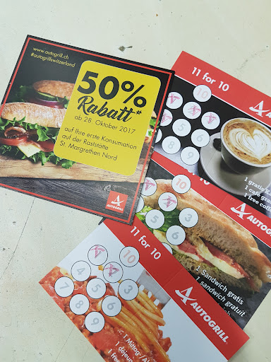 Sono stato in questo locale con la mia ragazza in occasione di un viaggio verso Costanza. Si tratta di un Autogrill presente lungo l'autostrada poco dopo l'uscita di St. Margrethen percorrendo la strada verso il confine tedesco. L'interno è molto grande con tanti posti a sedere. Vengono proposti i tipici cibi e prodotti delle classiche aree di sosta. Ci sono dei bagni a utilizzo gratuito per i viaggiatori. I prezzi. essendo in Svizzera, sono un po' più alti rispetto a quelli...