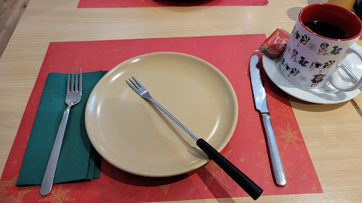 s the cheese fondue, the most swiss dish one can serve, that made worth the trecking effort. the cheese was creamy, tasty and seazoned. usually i am picky with cheese, but my favorite ones are those that are eirther rich in flavor or that stretch long enough to form what i like to call "strings of cheese". the fondue was both. A one way ticket to flavor town with stops for each bite. But beware, stop eating 2 days prior to the fondue, as even a single person portion can be very consistent, especially in combination with bread and pototatoes. I for one couldn't finish. The fondue goes well with a white wine or mulled wine (depending on the season) Speaking of which, great selection of whine they have! 32 swiss francs for the fondue 6.7 swiss francs for muled wine Make sure you pick a seat closest to the window as you will have an astounding panorama view of Zurich. At the moment of writting this review, the EU ceritificate is required accompanied by an ID. Tip: with the Swiss Rail Pass you get a 1+1 coupon for the fondue.Later edit: for summer I can only recoomend the Swiss Rösti( the dish with the Swiss flag in the attached photos), which comes in SUPER HOT, take care not to burn your tongue. The rest of the food felt bland, commercial and the beer selection was reduced and a bit expensive for the rather ordinary taste. The tisues were super noce and didn't have the heart to use them so I kept them...