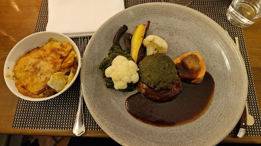 Am 13. Januar 2023 hatten wir das Vergnügen, im Restaurants Stans Rosenburg in der rustikalen Gaststube im Gewölbekeller zu speisen. Unsere Durchreise wurde durch ein wundervolles Abendessen an diesem bezaubernden Ort bereichert. Das Restaurant Stans Rosenburg hat uns mit seinem exzellenten Essen und dem freundlichen Service absolut überzeugt. Die rustikale Gaststube im Gewölbekeller verleiht dem Ambiente einen gemütlichen Charme. Das Rindsfilet-Medaillon mit Kräuterkruste war wir bestellten war auf den Punkt medium gebraten und die Rotweinsauce dazu war einfach köstlich. Auch das Kartoffelgratin und das Gemüse waren perfekt zubereitet und kreativ angerichtet. Als Überraschung gab es zu Beginn ein leckeres Rüebli Ingwer Trink Süppchen, das unsere Geschmacksknospen verzauberte. Sowohl die delikate gehobene Küche als auch die ausgezeichnete Qualität der Speisen und die abwechslungsreichen Menüs haben uns beeindruckt. Die Auswahl an Speisen war vielfältig und ließ keine Wünsche offen. Der Service war einwandfrei, professionell und unkompliziert. Zudem ist das Restaurant hundefreundlich, was für uns als Hundebesitzer sehr angenehm war. Die Auswahl an Weinen war groß und wir konnten einen hervorragenden Wein zu unserem Essen genießen. Das Preis-Leistungs-Verhältnis war stimmig. Insgesamt war es ein wunderbarer Abend mit ausgezeichnetem Essen und einem freundlichen Service.