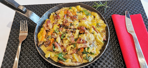 Read moreWir hatten im April einen Tisch zu einem Geburtstag-Abendessen fĂŒr 5 reserviert. Diesen liess man uns selbst finden. Dort sassen wir ewig lange unbedient, ohne auch nur GetrĂ€nke bestellen zu können. Als dann doch mal jemand an unseren Tisch trat, lieĂ man uns sogleich wissen, dass die SpezialitĂ€t des Hauses, Cordonbleu, ausverkauft sei. Wir bestellten dann Tatar (war okay, aber nur eine Scheibe Toast p.P. doch sehr knapp bemessen). Zum Hauptgang 4x Falafel mit Röstitaler und Salat sowie eine KĂ€seschnitte. Auf zwei von vier Tellern wurden Kohle-Briketts statt Röstitalern serviert und die drei Falafelkugeln pro Teller waren dermassen trocken - der Spritzer Sauce reichte knapp fĂŒr eine - dass man sie kaum runterkriegte. Die KĂ€seschnitte war genauso unterirdisch wie die Röstitaler: Man stelle sich eine Scheibe Brot mit dem "Grosi" aus dem Fondue-Caquelon vor. Einmal...