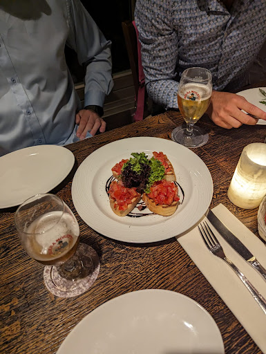 Read moreDie Location ist sehr schön und zeitlos, stillvol eingerichtet. Beim betreten des Restaurants, wird man herzlich und freundlich Empfangen. Ein positives Detail, der Mantel wird vom Personal abgenommen und auf Wunsch in die Gardorbe gebracht. Nachdem man zum Tisch geleitet wird, erwartet einem, einen schön farblich angenehm dekorieter Sitzplatz. Das Personal ist sehr aufmerksam, ohne aufdringlich zu sein. Insgesamt wirkt das Personal und der Chef, sehr kollegschaftlich miteinander umzugehen. Es herrscht daher ein erfischend fröhliches Klima, was zum guten Ambiente beiträgt. Die Speise und Weinkarte ist vielseitig, ohne überfüllt zu wirken. Ein guter Mix aus vegatarischen und Fleischgerichten. Erwähnend ist das qualitativ hochwertige Weinsegment. Meine Speise Risotto Caruso: Gemüserisotto mit Rindsstreifen, ein Träumchen für den Gaumen. Risotto mit der genau richigen Konsistenz, Rindstreifen zart wie Butter. Geschmacklich schön würzig, ohne übergewürzt zuwirken. Einfach fantastisch. Detail am Rande die Zitrone im Wasserglas, war frisch und so hatte das Wasser, einen wunderbaren Limonengeschmack. Es wird bis aufs Detail, auf Qualität geachtet. Der Service ist rundum sehr gut. Das Überraschungsdessert, war sehr hübsch dekoriert und der Kaffee, versetzt einem gedanklich auf eine Piazza, in Italien. Kurz gesagt, ein perfekter Ort um den Gaumen zu verwöhnen. Sehr gerne wieder Ein...