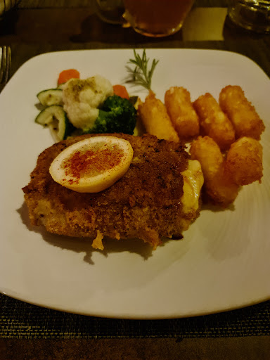 Das Cordonbleu war knusprig und mit leckeren Käse gefüllt. Auch die Pommes waren gut,