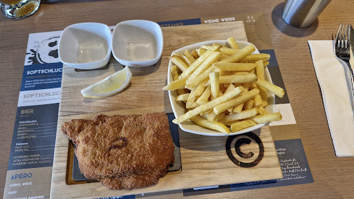 Bedienung: die beiden Damen waren äusserst freundlich Bestellprozess: Logisch ist es nicht für jeden das praktischste System und z.B. mein 65 jähriger Vater hätte mit dem Bestellprozess mühe. Jetzt das grosse aber: Die Bedienung hilft ja wenn man nicht zurecht kommt, sprich man kann ja sogar "normal" Bestellen. Preis/Leistung: Jeder der hier kommt mir die Cordon Bleu sind zu klein soll halt in die Stammkneipe und sein XXL Cordon Bleu essen. Ich fand jetzt die Grösse voll i.O. und war nach einem Cordon Bleu mal nicht überessen. Vor allem dass die Stücke nicht voll mit Öl sind hat mir sehr gut gepasst. Ist es das Beste Cordon Bleu das ich je gegessen habe? Nein. Es ist aber ein gutes Cordon-Bleu mit einem sehr guten Preis und man kriegt sein Essen sehr schnell, was für Leute welche nicht ewig Zeit haben (z.B. vor dem Kinobesuch) sehr praktisch ist. Das man für CHF 5.00 so viel Softschluck trinken kann wie man will ist sehr gut.