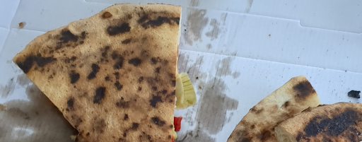 En photo un exemple de notre dernière commande sur laquelle vous pouvez admirer de magnifiques plaques charbonnée à la place de ce qui devrait être de la pâte. Avant de commenter nous avons goûté afin de nous assurer que ce n'était pas esthétique, résultat et sur les 3 pizzas commandées seul une était...