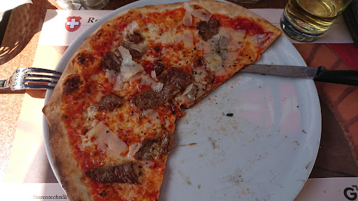 Mir wurde dieses Restaurant zum essen empfohlen und kann sagen, ja der Tip war Gold wert. Auf Grund der Tatsache das ich nur 150meter davon entfernt die besten Pizzas meines lebens geniesen durfte ( sorry war bei einer Privatperson), war ich sehr gespannt. Nebst sehr gut aussehenden Salaten und div. Fleisch auf dem Stein, hatte ich mich fĂŒr eine Pizza entschieden und die war der Hammer. Genau so sollte eine Pizza sein. Sehr feine und frische Zutaten und der Holzofen gab noch die Krönung dazu. Preise auch völlig ok in meinen Augen. Kann und werde ich weiter empfehlen mit dem Gratistip: unbedingt vorher...