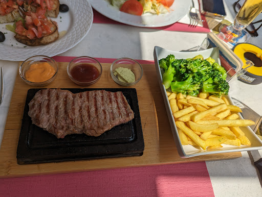 Read moreDas Restaurant wurde uns vom Hotel empfohlen, aber schon beim Betreten hätte man wieder gehen sollen. Eine für das Gastgewerbe recht wortlose Person am Eingang, keine Begrüssung, nur der Satz "wo wollen sie sitzen". Das gesamte Interieur des Restaurants wirklich eher alt und bisschen schmuddelig. Dann kam ewig niemand, ich musste mich mehrmals bemerkbar machen, um überhaupt ein Getränk zu bestellen. Wir beide haben Schnitzel (Rind & Schwein) mit Pommes bestellt - an der Kräuterbutter war bei einem Gericht noch die Plastik dran. Das gesamte Gericht war lieblos auf dem Teller angeordnet, die Pommes schmeckten wie aufgewärmt und waren dafür, dass man die Beilage extra bezahlt, wirklich viel zu wenig. Für den weiteren Service und das Bezahlen kam schlussendlich auch niemand mehr an den Tisch. Bin dann aufgestanden und habe an der Kasse bezahlt - selbst da wurde man noch halbwegs ignoriert, indem mit x-beliebig anderen Gästen in der Muttersprache Smalltalk abgehalten wurde. Wir können dieses Restaurant überhaupt...