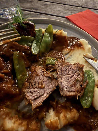 To start, I rarely will rate below a 2 stars, but this was not it. I was highly anticipating this restaurant because my paragliding guide, who has lived here forever, recommended it, but Interlaken surely has a few better Swiss food options and this is not one of them. If you care about the actual food, skip this place. I care about food far more than service, and this place was a huge disappointment. I ordered the beef stew, which my waitress recommended, and the meat was unbearably dry and chewy, not even the gravy could save it. Seriously, it was the worst-quality beef I can remember having at a restaurant. The Pinot Noir was excellent, but that was the only highlight. Thad a reservation for 9 and showed up early at 8:45. On the phone they had said the kitchen closed at 9:30, but when I arrived no one attended my table until 8:58, when the waitress rushed over and told me the kitchen closes at 9. Meanwhile, the table next to me placed their order at 9:15 without issue. There was no silverware on the table, and I was never checked on once after my food arrived, which was very frustrating.