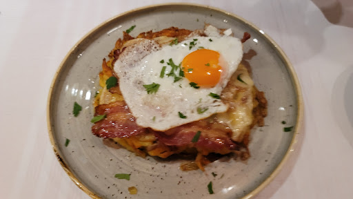 My wife on the hand had the Alpine Rostli which is something of a gem. The rostli is shaved potatoes with chesse (swiss), topped with bacon and an egg. It looks and it tastes amazing and the cheese just melts in the mouth. It's a great selection and a great combination of ingredients. whoever chose it, knows what's doing. Nontheless, leaving the restaurant i felt remorse for not having ordered the roestli. Not sure if it's worth mentioning, but the Rot Jungfrau washed everything down very well. not bitter at all, but flavorful, a tad bit sweet, not that spraking but foaming. would order again. Cobow Schnitzel: 19 Swiss Francs Alpine Roestli: 24 Swiss Francs Rot Jungfrau Bräu: 6.5...