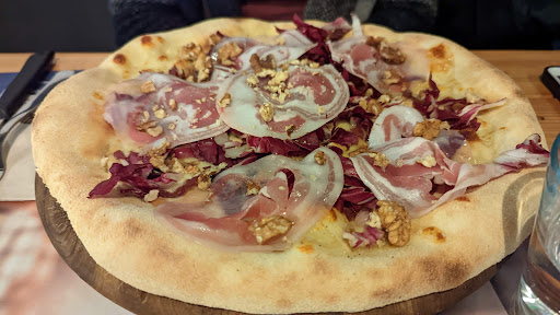 They offer a selection of different dough. I did find the pizza tasty but not exceptional, the crust is crispy and airy. Ingredients where fresh and good quality. Not sure about the used oven, but I would like my pizza a tiny bit more cooked.