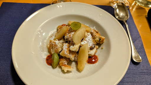 Schnitzel vom Kalb waren ganz gut, obwohl sie uns kleiner erschienen als frĂŒher. Optisch wars, was soll ich sagen, einfach ein Schnitzel und ein Teller. Nicht einmal mehr das klassische Peterli oder Tomatenschnitzli hat es auf den Teller geschafft. Passend jedoch zum restlichem Ambiente, kahl und lieblos.