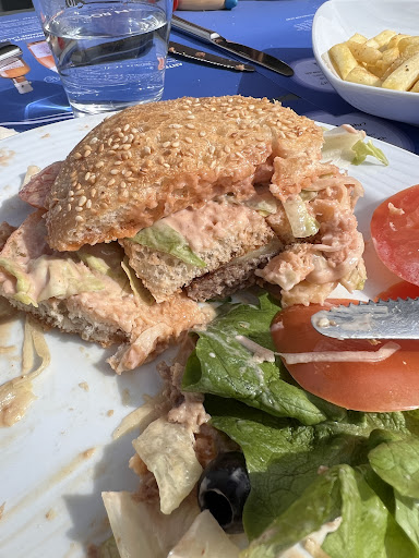 Nach etwa zehn Minuten Wartezeit kam unser Essen. Der beworbene „Pier Burger – ein großes Erlebnis“ entpuppte sich als große Enttäuschung. Der Burger war tatsächlich groß, doch die übermäßige Menge an Cocktailsauce, die das Brötchen durchtränkte, sorgte dafür, dass wir mehr mit dem Schwimmen unseres Essens kämpften als mit dem Genießen. Das Brot war so durchweicht, dass ich den Burger fast als „Cocktail im Brötchen“ hätte bezeichnen können. Mein Hinweis auf die übermäßige Sauce wurde mit einem Schulterzucken und kaum einem Wort beantwortet. Eine konstruktive Rückmeldung seitens der Kellnerin oder der Küche blieb aus, was den Gesamteindruck weiter trübte.