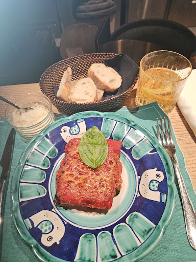 Lasagna A+ Bread, Olive Oil & Balsemic B+ Desert...