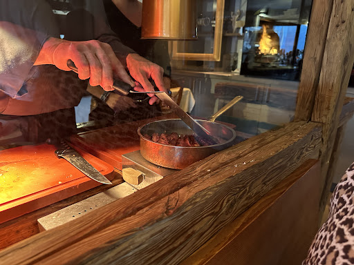 On peut y manger n'importe quoi et c'est délicieux. Concernant la viande, elle est préparée sur le grill à bois. Celui-ci est situé dans le restaurant lui-même mais dispose d'une ventilation par aspiration supplémentaire afin que vous ne remarquiez pas que les gens y font des grillades. Le cuisinier du grill connaît parfaitement son métier et prépare donc chaque morceau de viande à la perfection. C'était super savoureux. Le personnel est courtois et très sympathique. Nous reviendrons certainement lors de notre prochaine...