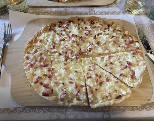 Nous aurions apprécié : goûter une tarte flambée mais son prix (16Fr) nous a rebuté. que la sauce et l'accompagnement du saucisson de sanglier soit moins sucré afin de ne pas prendre le dessus afin de converser un équilibre plus fin entre le mélange salé / sucré de ce plat.