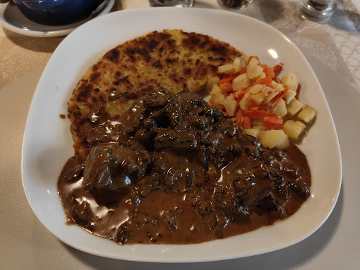 Nous aurions apprécié : goûter une tarte flambée mais son prix (16Fr) nous a rebuté. que la sauce et l'accompagnement du saucisson de sanglier soit moins sucré afin de ne pas prendre le dessus afin de converser un équilibre plus fin entre le mélange salé / sucré de ce plat.