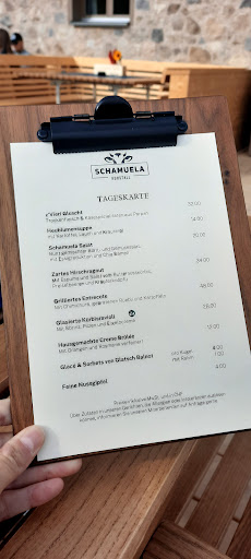 Read moreHabe mich gefreut, dass nun auch auf der Lenzerheide Seite eine etwas gehobenere Gastro geplant ist. Schamuela kann aber noch nicht ganz überzeugen. Beim Service, Empfang ist sehr viel Luft nach oben. Da kann man sich etwas abschneiden bei den Kollegen aus Arosa im Alpenblick, Alp Arosa. Für den Inhaber auch interessant vielleicht: Service macht sich null Mühe etwas zu verkaufen, Empfehlungen zu geben. Ich hätte locker 50.- mehr ausgegeben, wenn ich mich selber bedient hätte 😉 Essen war Ok. Preis Leistung auch noch nicht dort, wo es sein könnte. Dasselbe gilt für die Karte. Etwas zu wenig raffiniert noch. Das Angebot auf dem Tagesmenu war schon fast etwas sehr flau. Nicht würdig für so eine Location. Weinkarte gut, faire Preise. Besteck in eine Rote Serviette eingewickelt? Bitte nicht. Das wirkt doch eher wie eine billige Beiz. Details, Leute, Details! Wir Gäste sehen das, merken das! Also hopp. Ihr habt noch viel zu tun. Aber es könnte klappen. Komme wohl erst nächstes Jahr wieder. Vielleicht ist es dann besser. Bis dann doch lieber nach Arosa (leider, weil weit) oder Motta. Meine Ansprüche werden auf der Stätzerseite noch nicht...