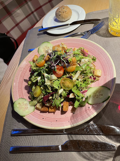 Tomatencrèmesuppe, winterlicher Blattsalat und vom Abendhit die Zanderchnusperli bestellt. Wunderbar, ganz sicher frisch zubereitet und hausgemacht. War sehr gut. Der Service war freundlich, speditiv und auch flexibel. Ich hatte noch zusätzliche Tartaresauce gewünscht, war in kürzester Zeit am Tisch.