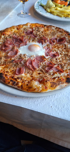 Greeted by a lovely waitress. My other half had lamb chops with fries and veg. I had a pizza with tuna and ham and an Egg!