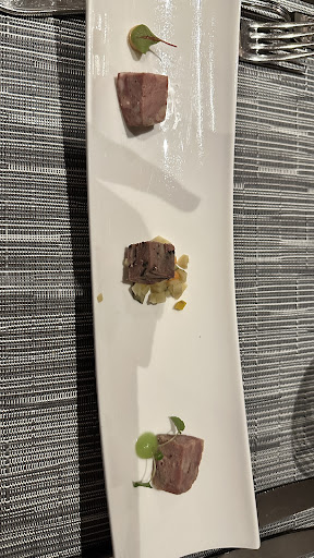 Overrated. Friendly staff. We ordered different set menus and the waiter reaction was ‘too difficult for the kitchen’ and then she left to break the hard news to the chefs. We ordered the Basque menu and the classic set menu. The Basque menu had pintxos written and was anything but. A kid who travelled to Basque Country could tell if two slices of foie gras sandwiching a slice of bread is a pintxo or not. Ambitious meals Pork meat was fatty. Desserts were nice but not mind blowing. They all looked like from Mr and Mrs Renaud. If you expect boiled veggies on a main dish from a Michelin star then this is your place. Somelier was very good and very nice attitude. Price is too high for what you get. Buy yourself a MB pass and drive to Torino for a michelin meal for the same money and...