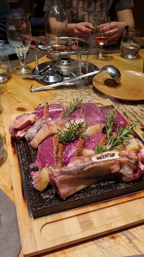 Mon mari a pris une pizza qui était correcte pour le prix mais pour ma part, il y a eu un gros problème de quantité avec les chopes d'agneau à 44.- et je leur en ai fait part : 3 petites côtelettes de 1cm de hauteur, je pense honnêtement qu'il y avait pas les 200g notés sur la carte mais plutôt max 150g (je suis fille de boucher), ça ne vaut même pas la peine de les mettre sur l'ardoise, en plus il y avait des os pointus, il fallait faire attention pour les manger... une seule patate de taille moyenne et j'ai demandé des légumes qui m'ont été facturés 5.- en supplément. Donc 49.- pour une assiette et j'avais encore faim après. Nous avons encore pris un tiramisu qui tenait dans un petit pot à Nutella pour 14.-. Heureusement que c'était bon cependant... La responsable a fait un geste et nous a offert un limoncello mais surprise après avoir analysé l'addition, le zacapa nous a été facturé 5.- plus cher que sur la carte! Une addition à 220.- pour les 2 avec apéro, bouteille de vin et digestifs, ça fait cher pour avoir encore faim en partant, nous ne...