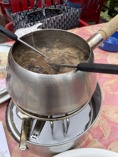 Another discovery in Villeneuve, or rather on the road out of the town towards Chillon castle. We went twice, on Sunday and Tuesday. The 'special' for Sunday evening is a Bourgignonne fondue of horsemeat for SFR 27, which I had and enjoyed immensely. Why the Brits and, I suspect the Americans are so anti- the thought of Dobbin and chips I can only attribute to sentimentality, as it is delicious. The meat is from Canada in this restaurant - perhaps retired from service with the Mounties? All other meat is Swiss. My wife had a ham omelette for SFR 18. I believe we were the only customers not resident in the town. The atmosphere was brilliant, the service was up to the usual Swiss standard. Being Italian, the Provenzano family who own the place serve up the usual array of pasta and pizza dishes. On our return on Tuesday lunchtime, my wife had home-made lasagne while I had a cheese and egg 'croûte'.The two cost SFR 45 together. Swiss eating-out IS dear, no gainsaying that, but it is always superb quality in our experience and the Rest. du Nord is no exception. Blame the weak pound rather than the strong...