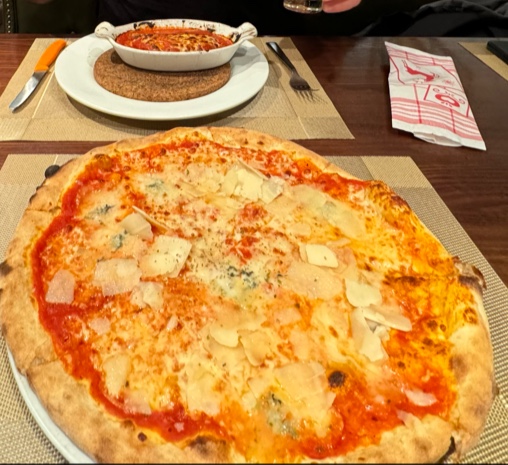 Although the starter (parmigiana alla melanzane) was absolutely fine, the rest was miserable. We had to wait 1 hour after the starter to get the pizzas. Restaurant was almost empty and the others guests had pasta, so pizza oven was not overused. They also brought one wrong pizza so one of us had to wait an extra 10 minutes. Then, one of the pizza dough was not cooked enough, the pizza with goat cheese was filled with 1 pot of honey and really not good looking. The personal did not apology for the delay and that was the most disappointing. They really did not care, even when we said we were...