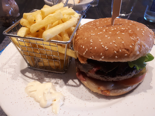 Je mets volontiers 5 Ă©toiles pour la beautĂ© et la modernitĂ© du restaurant, son parking et surtout pour l'accueil, la gentillesse et le sourire constant des deux jeunes filles qui s'occupaient du service ! Nous avions commandĂ© des burgers classics; les buns sont larges et parsemĂ©s de quelques graines qui donnent bon goĂ»t. Des frites gĂ©antes accompagnent Ă©galement ce plat et elles sont trĂšs bonnes. Par contre, nous avons trouvĂ© que la quantitĂ© de viande Ă©tait trop faible pour un pain aussi grand, le fromage Ă©tait quasi inexistant car collĂ© sur le buns du haut qui Ă©tait lui aussi un peu trop toastĂ© et un peu dur. Le prix de 28.- est clairement beaucoup trop haut et devrait plutĂŽt se situer entre 20.- et 22.- grand maximum toujours en rapport Ă la faible quantitĂ© de viande. Sinon, une copine avait commandĂ© l'aiguillette de bĆuf et l'a trouvĂ©e trĂšs bonne, malgrĂ© aussi un prix un peu Ă©levĂ© pour un si petit morceau. J'y reviendrais volontiers mais plus Ă ce prix malheureusement, car il y avait quand-mĂȘme beaucoup de goĂ»t et le service...