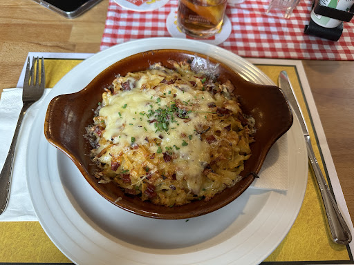 Read morefür eine kurze Kaffee Pause, eingekehrt, Bedienung war freundlich und wenn man Sie gerufen hat, kam sie sich umgehend an den Tisch. Sass nur draussen,auf der Terasse, den Innenraum nicht gesehen. Der Eingang ins Restaurant, so wie ich es gesehen habe, erfolgt nur über die Terasse, was sicher, je nach Anzahl der Gäste, doch mühsam werden kann. Liegt direkt an der Hauptstrasse, je nach Verkehr kann...