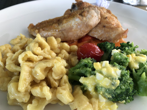 Zum Abendessen. Wir haben Chateaubriand bestellt. Medium gebraten bestellt, gekommen ist es durchgebraten, keine rosa Stellen. Bis dann vom Personal mal nachgefragt wurde vergingen 10 Minuten. Da wir draussen assen wurde das pro Person 62.- teure Essen nicht an Tisch geschnitten, auch nicht präsentiert - wir bekamen je 1 Teller mit 3 kleinen Medaillons, 5 Bratkartoffelchen und etwas Gemüse. Geschätzt waren es pro Person ca. 120gr. Fleisch. Kein zweiter Teller? Viel zu wenig für diesen Preis. Es war eher wie eine Vorspeise. Da wir Hunger hatten und es schon lange genug gedauert hatte wollten wir nachdem wir das durchgebratene Fleisch reklamiert hatten auch nicht nochmals auf ein neues Chateaubriand warten (Schade für das gute Stück Fleisch) . Es wurde uns als Entschuldigung ein Desert Kaffee angeboten. Da ich kein Dessert wollte, haben sie zum Schluss nur 2 Kaffee von der Rechnung gestrichen. Eine nochmalige Entschuldigung von Personal, Koch oder Wirt wäre angemessen gewesen, sowie das Streichen eines Menus. Wer mit Preisen in dieser Liga mitspielen will sollte auch in der Lage sein das Wesentliche in der Küche am Gast abzuliefern. Beim Servieren wurde auch erst darauf aufmerksam gemacht das Estragon fehle weil es im Kräutergarten zu viel geregnet hatte. Wieso teilt man das beim Servieren mit und nicht bereits schon bei der Bestellung. Das Servierpersonal spiegelt auch nicht die Preisklasse diees Restaurant wieder. Es fehlt grundsätzlich an Handwerk, Freundlichkeit und Professionalität. Ein sehr entäuschendes...