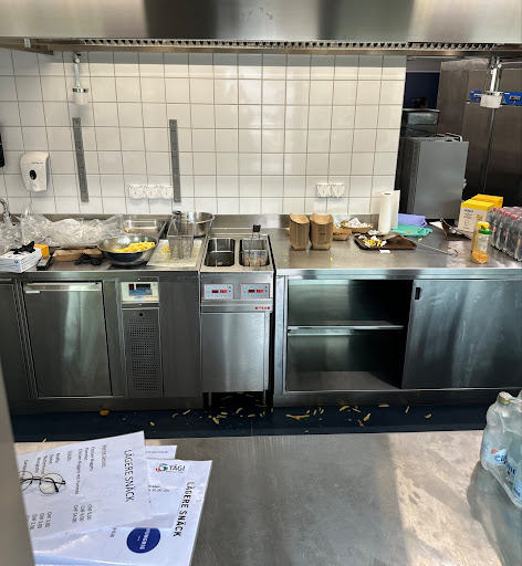 Read morehinterm buffet auf der ablage ist alles mit privatem zeugs überfüllt. wahrscheinlich von den mitarbeitern. sehr unprofessionel. zudem könnte die wirklich freundliche mitarbeiterin ( sehr spez. frisur) wenn nicht viel los ist mal nen putzlappen in die hände nehen. qualität pommes und nuggets positiv...