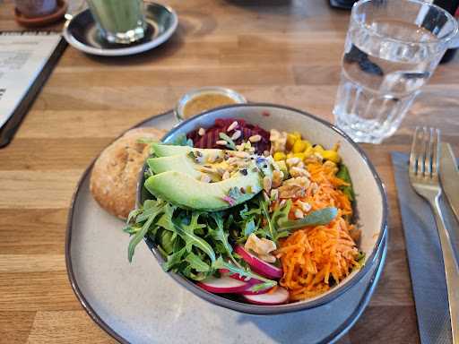 The homemade cakes are unique and delicious: try the cheese cake with the chocolate base, beautifully served with a lovely latte. They have soy or oat...