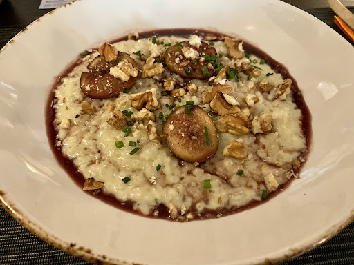 I has a “Gorgonzola risotto” that was watery, sweet (I guess due to the balsamic vinegar sauce), and that had no taste of Gorgonzola whatsoever. The rice cooking was not good: raw at heart, and mushy outside. I have to admit that the plating looked nice.
