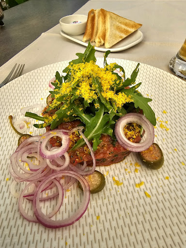 Interessante Gerichte. Bevor ich anfing, wurde mir ein Gruss aus der Küche offeriert. "Tunfischwürffeli", danke dafür. Ich hatte ein Markbein mit Toast als Vorspeise. Es war geschmacklich echt mega gut. Die Art und Weise wie das Gericht gemacht wurde, ist fantastisch. Sehr empfehlenswert. Als Hauptspeise hat ich das Rindstartar. War mal eine neue Interpretation. Sehr würzig und man schmeckte das Eigelb gut raus. Es hatte eine leicht sämige Konsistenz. Schmeckte aber gut. Alles war sehr schön angerichtet. Vielen Dank, komme gerne wieder. Beste Grüsse
