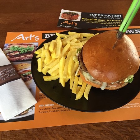 Um 17:45 waren wir fast die einzigen GĂ€ste, dies hat sich im Verlauf des Abends aber geĂ€ndert, es war dann doch schnell gut besucht. Die Ersten GetrĂ€nke waren schnell am Tisch. Die Vorspeise (Black-Tiger Crevetten und das Knoblibrot aus dem Ofen) war schön angerichtet schnell da und als Vorspeise zu zweit genug. Noch nicht ganz fertig mit der Vorspeise kam auch schon der Hauptgang (Burger No.1 und 3 mit Pommes) Geschmacklich Top, gab nichts zu beklagen. Als das Restaurant gut besucht war mussten wir schon 10 Minuten auf unsere nachbestellten GetrĂ€nke warten aber das war gut zu verkraften. Den Espresso am Schluss mussten wir dann doch nach bestellen, was jetzt auch kein Weltuntergang war. Zu zweit haben wir gut und genug gegessen sowie mit 2 Bier, Espresso und 2 Colas gut Getrunken fĂŒr ca 100 CHF.