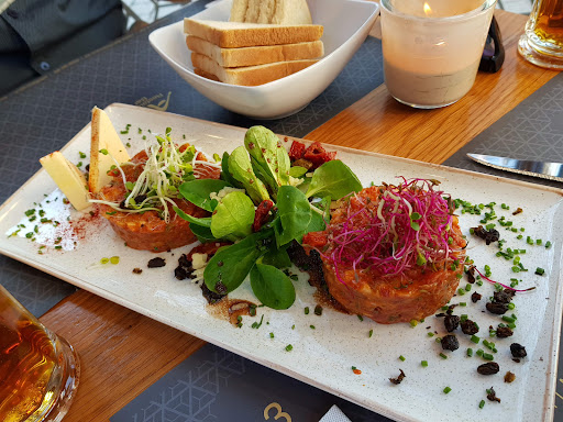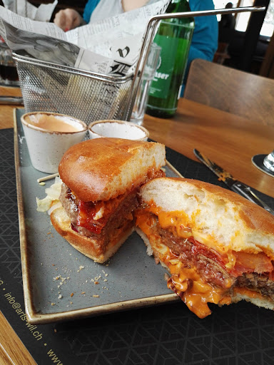 Um 17:45 waren wir fast die einzigen GĂ€ste, dies hat sich im Verlauf des Abends aber geĂ€ndert, es war dann doch schnell gut besucht. Die Ersten GetrĂ€nke waren schnell am Tisch. Die Vorspeise (Black-Tiger Crevetten und das Knoblibrot aus dem Ofen) war schön angerichtet schnell da und als Vorspeise zu zweit genug. Noch nicht ganz fertig mit der Vorspeise kam auch schon der Hauptgang (Burger No.1 und 3 mit Pommes) Geschmacklich Top, gab nichts zu beklagen. Als das Restaurant gut besucht war mussten wir schon 10 Minuten auf unsere nachbestellten GetrĂ€nke warten aber das war gut zu verkraften. Den Espresso am Schluss mussten wir dann doch nach bestellen, was jetzt auch kein Weltuntergang war. Zu zweit haben wir gut und genug gegessen sowie mit 2 Bier, Espresso und 2 Colas gut Getrunken fĂŒr ca 100 CHF.