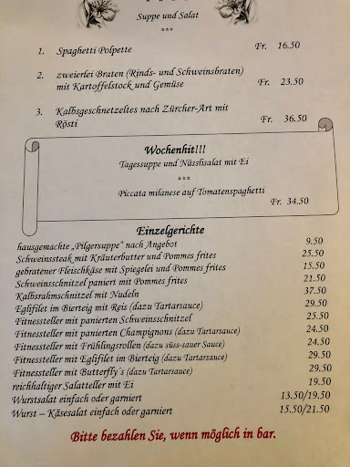 Read moreWir waren mit einer Gruppe dort auf Empfehlung Mittagessen. Netter Empfang in einem weihnachtlich sehr schön geschmĂŒckten Speiseraum. Leider war das auch schon das Gute an dem Erlebnis. Ein etwas zerknittertes Blatt mit der umfangreichen Mittagskarte. Frittiertes und Paniertes neben Salat als Fitnessteller anzubieten, darĂŒber könnte diskutiert werden. Einiges liess auf Convenience schliessen ( Optik und Geschmack ), das Meiste fettig, schwer. Eine GetrĂ€nkekarte wird nicht angeboten und auch nur einmal etwas erfragt. Der Service wirkte sehr gestresst, unfreundlich und desinteressiert. Das Essen wurde sehr eilig serviert und ebenso ruppig wieder abgerĂ€umt, egal ob noch andere am Tisch am Essen waren oder nicht. Dass die HĂ€lfte der Gruppe nach dem Essen Durchfall bekam reichte uns, dass wir diesen Besuch nicht wiederholen werden. Ansonsten gibt es immer eine...