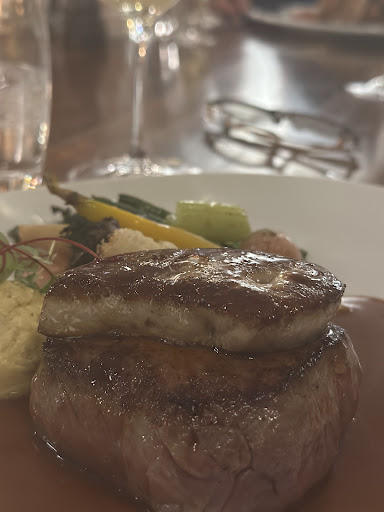 Wir durften die Gänseleber geniessen, als Zwischengang einem Markknochen probieren und als Hauptgang Rindfilet mit Entenleber.