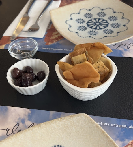 Wir waren zu zweit am Dienstag Mittag bei Palmera und wurden direkt freundlich vom Besitzer empfangen. Er ist ein sehr sympathischer und aufmerksamer Mann und man fühlte sich bei ihm direkt willkommen. Uns wurden sogar Oliven und frittiertes Labneh zum Apero gereicht und nach dem Essen ein Dessert aus Griess. Das Lokal selbst liegt zwar etwas abgelegen, was vermutlich auch einer der Gründe ist, weswegen eher wenige Gäste zu sehen waren. Trotzdem würde ich jedem, der in der Nähe von Winterthur Lust hat auf syrisches Essen empfehlen, hier vorbei zu kommen. Auch die Einrichtung ist sehr schön gestaltet mit traditionellen Lampen und Geschirr. Ich habe mich gefühlt wie im Urlaub! Wir haben die Platte „Fleisch für 2 Personen“ bestellt und zur Vorspeise einen Salat bekommen mit Gurken, Tomaten und Granatapfelsirup. Bei der Platte inbegriffen waren die verschiedenen Dips mit dem arabischen Fladenbrot - mein Favorit war der Hummus, welcher sehr cremig und lecker war - und die Platte mit verschiedenen frittierten Speisen. Hierbei haben mir die Falafel am besten geschmeckt, aber zusammen mit den verschieden gefüllten Sambusek - Fleisch und Käse, den mit Lammhack gefüllten Kubbeh und dem Fatayer Lahma, welches ebenfalls mit Rind- und Lammhack gefüllt war, gab es eine grosse Auswahl. Es war alles sehr gut gewürzt, aber falls jemand Lammfleisch nicht gerne mag, würde ich die „Grillfleisch für 2 Personen“ Platte anstelle der Fleisch Platte empfehlen, da man bei dieser mehr Auswahl von verschiedenem Fleisch bekommt. Das Dessert aus Griess war süss und etwas kälter, was perfekt gepasst hat nach dem grossen Essen. Ich werde definitiv wieder vorbei kommen und das Restaurant auch bei Bekannten...