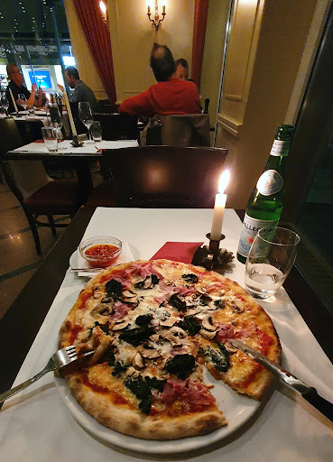 A really nice Italian restaurant in Winterthur with classic chic. A small thing, but I really appreciated the lit candle (lunch time) on the table on this thoroughly grey and gloomy day in January. The grand shiny piano in the center of the "sala" and the cristal chandelier did not let arise any depressive thoughts. Time to celebrate good food and company. The menu offers a broad variety of pasta and pizza. Nice classics. We didn't choose any secondi. A smaller range but also nice classic choice of meat and fish and seafood was however on the menu - completed by a daily offer. My husband's pizza, dough and topping was luscious. And so was my plate of spaghetti marinara. The house made tiramisu, a combi of creamy and fluffy richness a worthy final act of a lovely meal Excellent service. Very friendly and attentive in an relaxed manner. It seems, that the staff is happy with each other which pervades the whole atmosphere. Lovely...