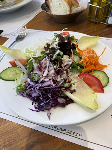 Sehr leckeres Essen und gut sortierte Karte, nicht zu viel und nicht zu wenig Auswahl. Wir hatten einen Flammkuchen ohne Käse bestellt, was auch sehr gut umgesetzt wurde und sehr lecker war. Als Hauptgang haben wir uns jeweils ein filetstück auf dem heissen schieferstein gegönnt, welches qualitativ sehr hochwertig war. Beilagen konnten wir je nach Lust und Laune auswählen. Das gegrillte Gemüse als Beilage war saisonal und hatte einen sehr ausgewogenes bouqet, ebenso die hausgemachte Kräuterbutter, die es zum Filet gab. Passend zum Menü hatten wir eine grosse Auswahl an lokalen und internationalen weinsorten, ich entschied mich für den VALAIS, ein lokaler Wein mit leichter schwere, herb, jedoch lieblich im Abgang. Beim Dessert gab's etwas lokales, ein carac au chocolat, sehr speziell, eine Spezialität die es NUR in der französischen schweiz gibt. Das Ambiente war locker und freundlich, unser Tisch war sauber und adrett gedeckt. Die Bedienung war uns gegenüber sehr nett und freundlich, dennoch spürte man den röstigraben sehr (Bedienung wo gut französisch und englisch konnte, jedoch kein deutsch). Ebenso das Klientel, wo primär französisch war. Aber dennoch, sehr empfehlenswert! 5...