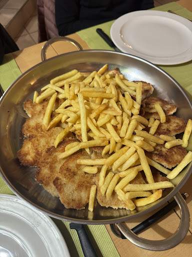 Wer sich am Donnerstag mal den Bauch vollschlagen will, ist hier genau richtig, sollte aber unbedingt reservieren. Für einen kleinen Aufpreis gibt es die Schnitzel auch vom Kalb. Sie sind einfach herrlich saftig und sehr lecker gewürzt und man schöpft die Salate und die knackigen Pommes einfach wie zu Hause, direkt vom Tisch. Die Menge trügt und man könnte denken es sei nicht von erster Qualität, die dünnen Schnitzel sind aber 1A Fleisch und butterzart. Bild zeigt erste Lieferung...