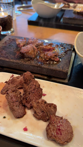 The meat is delicious, the hot stone and the three sauces always feel like a treat. It's also nice to have such a broad choice of side dishes. Desserts are nice as well.