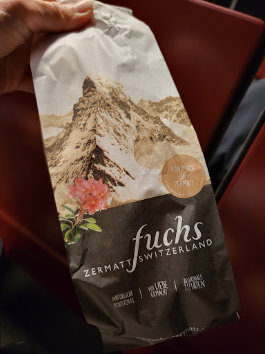 Read moreOf the many Fuchs in town, this one is the best. Great selection, similar to the others but possibly greater. This is the largest location as far as I can tell and because it’s not on a busy thoroughfare, it’s less busy. Also has plenty of indoor and outdoor seating. Fuchs in general has a wide range of excellent sweet and savory pastries and desserts and sandwiches. I feel their coffee is over priced and subpar but otherwise food and prices and good and match similar Zermatt standards. The only reason I say that about the coffee is that I believe I was charged 6.5 chf for a regular coffee which was made by pushing a single button on a machine. Meanwhile at Zermatt Kitchen, I can get a real filter coffee made from locally roasted, hand selected third wave beans in an equally nice establishment for only 6 chf… a far better tasting cup for less. Fuchs could perhaps do a partnership with the coffee roasters at Zermatt Kitchen and offer their truly high end filter coffee. Just a suggestion. Otherwise excellent place with...